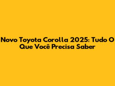 Novo Toyota Corolla 2025: Tudo O Que Você Precisa Saber