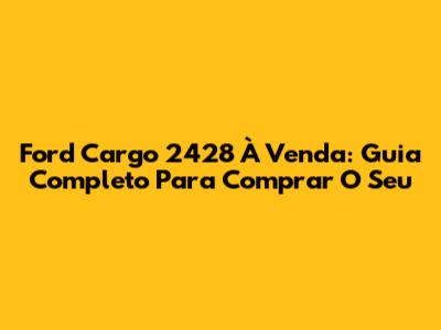 Ford Cargo 2428 À Venda: Guia Completo Para Comprar O Seu