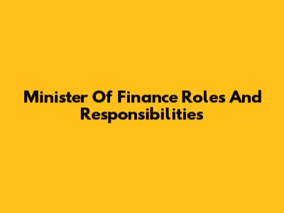 Minister Of Finance Roles And Responsibilities