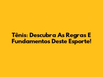 Tênis: Descubra As Regras E Fundamentos Deste Esporte!