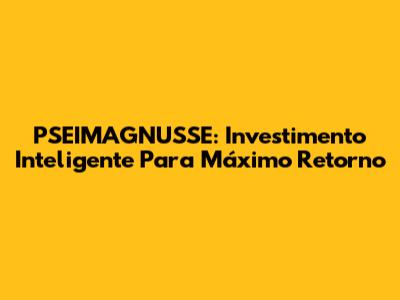 PSEIMAGNUSSE: Investimento Inteligente Para Máximo Retorno