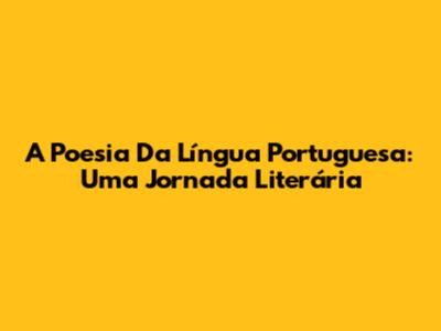 A Poesia Da Língua Portuguesa: Uma Jornada Literária