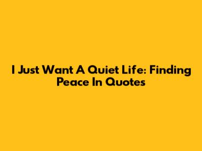 I Just Want A Quiet Life: Finding Peace In Quotes