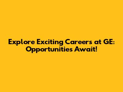 Explore Exciting Careers At GE: Opportunities Await!