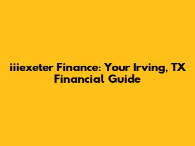 Hey there, financial navigators! Are you searching for iiiexeter finance in the vibrant city of Irving, Texas? Well, you've landed in the right spot! Let's dive deep into the world of iiiexeter, exploring what they do, how they operate in Irving, and how they can potentially assist you with your financial needs. This article is your ultimate guide, designed to be informative, engaging, and easy to understand. We will break down complex financial concepts into digestible chunks, so whether you are a seasoned investor or a financial newbie, you'll find something valuable here. Get ready to embark on a journey through the landscape of iiiexeter finance right here in Irving, Texas. We will uncover everything from the types of services offered to what makes this financial institution unique in the bustling Texas market. We will also explore the benefits and drawbacks of choosing iiiexeter, and how it measures up against other financial players in the area. Prepare yourself to become financially savvy and learn everything you need to know about iiiexeter and its impact on the Irving, TX financial scene. Let's get started, shall we?
