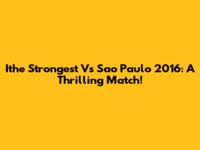 Ithe Strongest Vs Sao Paulo 2016: A Thrilling Match!