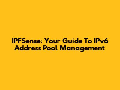 IPFSense: Your Guide To IPv6 Address Pool Management