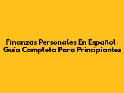 Finanzas Personales En Español: Guía Completa Para Principiantes