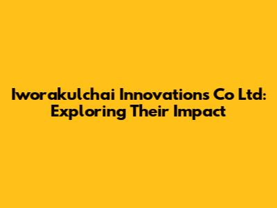 Let's dive into Iworakulchai Innovations Co Ltd and what makes them tick. Understanding this company involves exploring its core activities, its mission, and its impact on the industry it operates in. This article aims to provide a comprehensive overview, ensuring you grasp the essence of Iworakulchai Innovations and its significance.