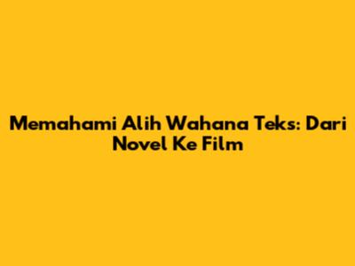 Memahami Alih Wahana Teks: Dari Novel Ke Film