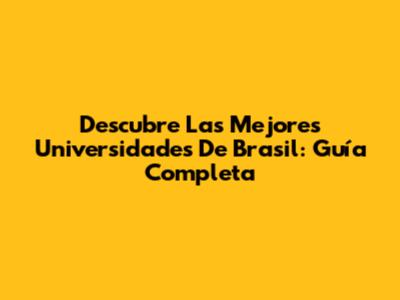 Descubre Las Mejores Universidades De Brasil: Guía Completa