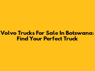 Volvo Trucks For Sale In Botswana: Find Your Perfect Truck