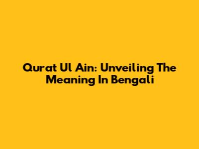 Qurat Ul Ain: Unveiling The Meaning In Bengali