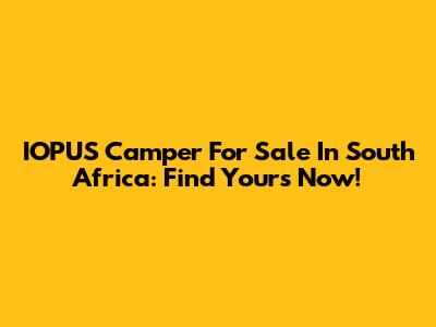 IOPUS Camper For Sale In South Africa: Find Yours Now!
