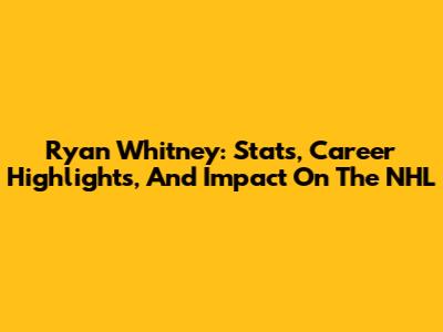 Ryan Whitney: Stats, Career Highlights, And Impact On The NHL
