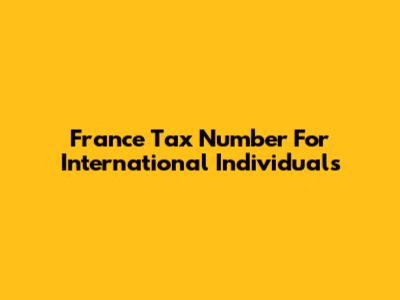France Tax Number For International Individuals