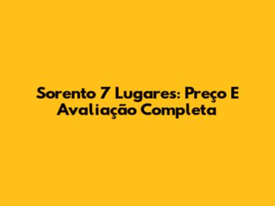 Sorento 7 Lugares: Preço E Avaliação Completa
