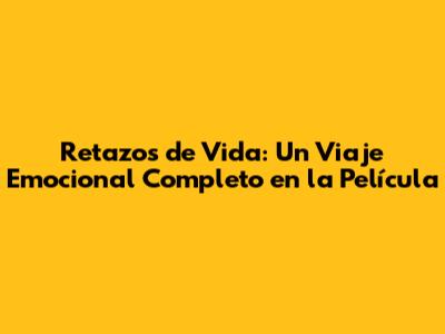 ¡Hola a todos, cinéfilos y amantes del buen cine! Hoy, nos sumergiremos en el fascinante mundo de "Retazos de Vida", explorando cada detalle para ofrecerles una experiencia completa. Prepárense para un análisis profundo, repleto de emociones y revelaciones sobre esta joya cinematográfica. Comenzaremos hablando de la sinopsis, elenco, donde verla y mucho más. Acompáñenme en este recorrido para descubrir por qué "Retazos de Vida" ha cautivado a audiencias de todo el mundo. ¡Empecemos!