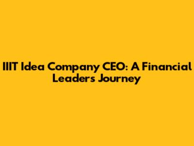 IIIT Idea Company CEO: A Financial Leader's Journey