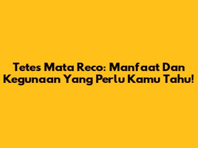 Tetes Mata Reco: Manfaat Dan Kegunaan Yang Perlu Kamu Tahu!