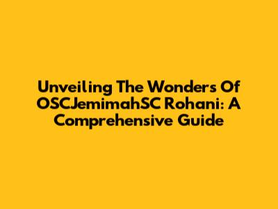Unveiling The Wonders Of OSCJemimahSC Rohani: A Comprehensive Guide