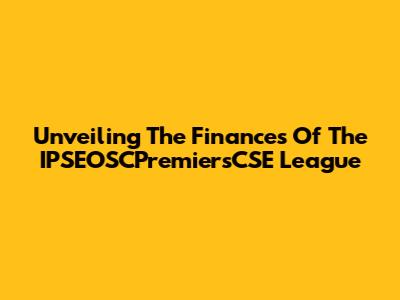 Unveiling The Finances Of The IPSEOSCPremiersCSE League