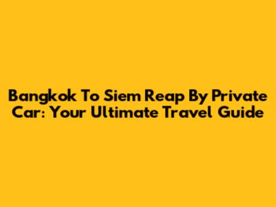 Bangkok To Siem Reap By Private Car: Your Ultimate Travel Guide