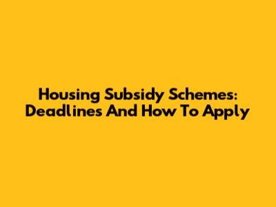 Housing Subsidy Schemes: Deadlines And How To Apply