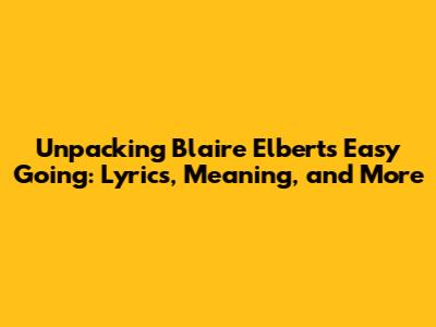 Hey music lovers, have you stumbled upon Blaire Elbert's tune, "Easy Going"? If not, you're missing out! It's a track that's been making waves, and for good reason. It's got that chill vibe that just makes you want to kick back, relax, and maybe even dream a little. Today, we're diving deep into the lyrics of Easy Going by Blaire Elbert, breaking down the meaning, and exploring why this song has struck a chord with so many of us. So, grab your headphones, get comfy, and let's unravel the beauty of "Easy Going" together!