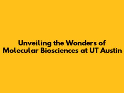 Unveiling The Wonders Of Molecular Biosciences At UT Austin