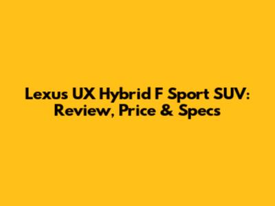 Lexus UX Hybrid F Sport SUV: Review, Price & Specs