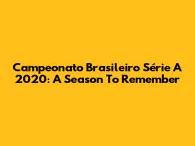 Campeonato Brasileiro Série A 2020: A Season To Remember